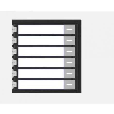 CARACTÉRISTIQUES Station de porte modulaire Plaque signalétique, nécessite un support de montage -Type de module Boutons ; -Fonction de support d’appel vers un poste intérieur -Rétro-éclairage OUI -N. boutons physiques 6 -Alimentation électrique 12VDC, 2W max- fournie par DS-KD8003-IME1 -Température de fonctionnement -40°C/ +60°C -Degré de protection IP65 -Montage encastré/mural -Dimensions 98,2 mm × 100,2 mm × 33,7 mm (3,87 × 3,95 × 1,33). ***