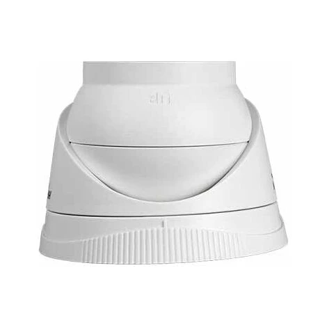 Caméra dôme avec structure en métal de couleur blanche, peut être installée à l’intérieur ou à l’extérieur (étanche IP67) avec un illuminateur infrarouge avec une gamme REAL allant jusqu’à 30M de vision nocturne. La forme en dôme rend le produit installable au plafond ou au mur.